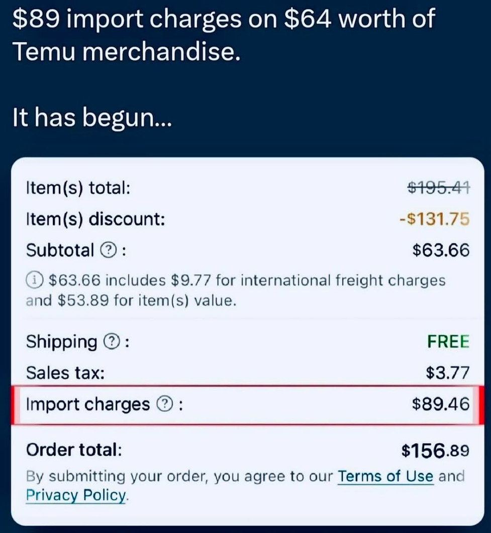중국발 제품에 대한 트럼프 대통령의 145% 관세 부과 결정에 따라, 테무(Temu)가 미국 고객을 대상으로 ‘수입세(import charges)’를 부과하기 시작했습니다. CNBC 보도에 따르면, 이 수입세는 때로는 상품 가격보다 더 비싼 경우도 있어, 미국 내 소비자들의 부담이 급격히 늘어나고 있습니다.