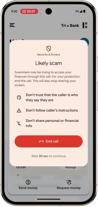 통화 종료 후에도 화면 공유가 계속되는 것을 방지하기 위한 알림이 추가되며, 영국 일부 은행들과 협력해 스크린쉐어 중 은행 앱 실행 시 경고 화면을 띄우는 기능도 테스트 중입니다.