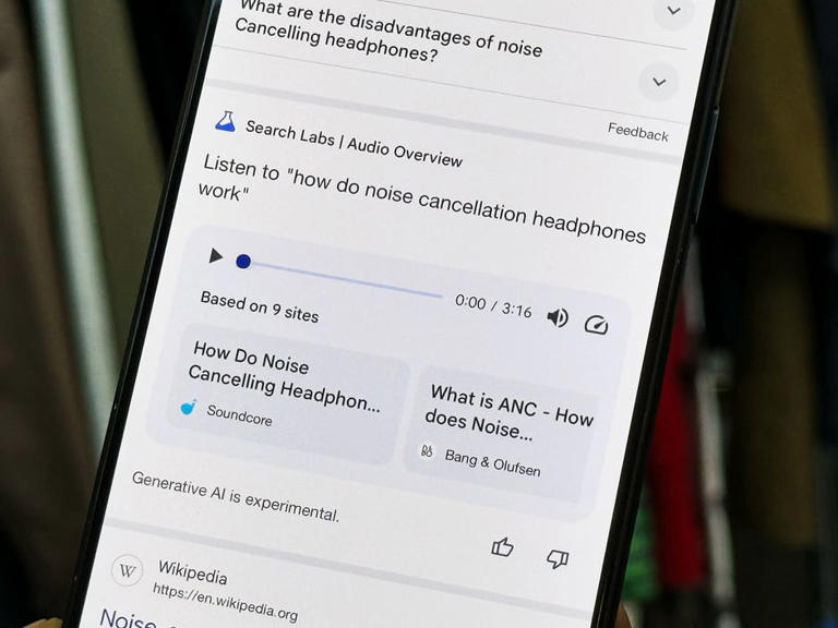 오디오 플레이어 하단에는 요약에 활용된 웹페이지 링크가 함께 제공돼, 사용자는 출처를 직접 확인하거나 더 깊이 있는 정보를 탐색할 수 있습니다. 시각 장애인 등 정보 접근성이 필요한 사용자에게도 유용한 기능으로 평가받고 있습니다. 다만, 아직 언어 지원이 제한적이고 요약의 신뢰성 검증이 필요해, 정식 서비스보다는 실험적 기능으로 간주해야 한다는 점도 강조됩니다.